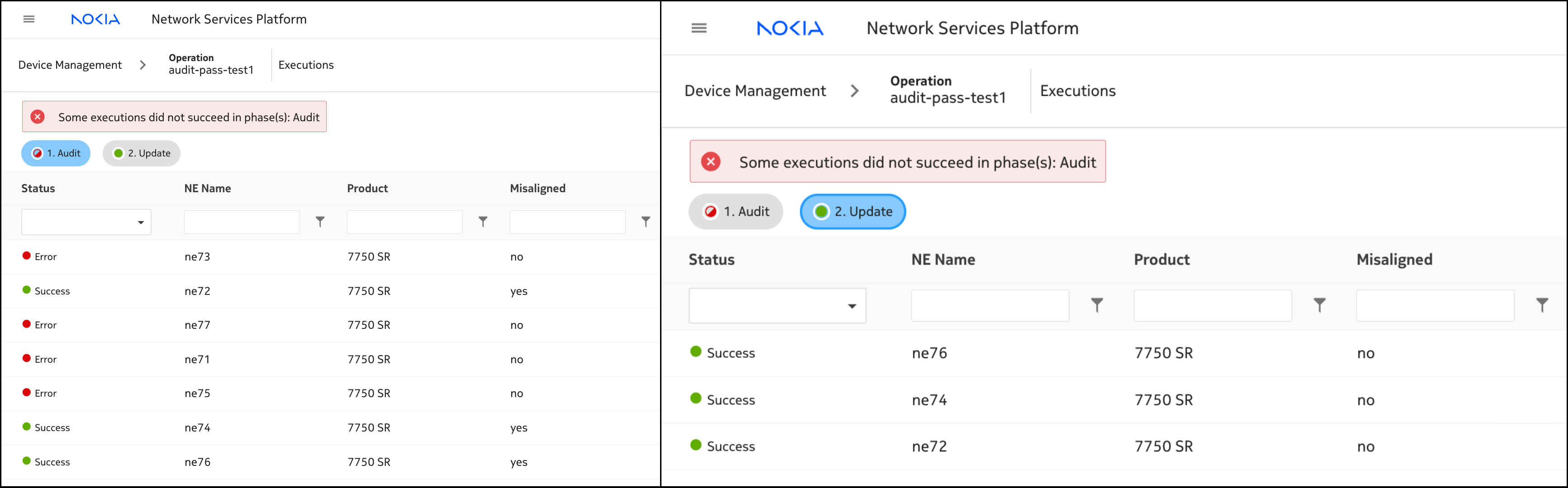 7. Execute the audit/realign operation again.